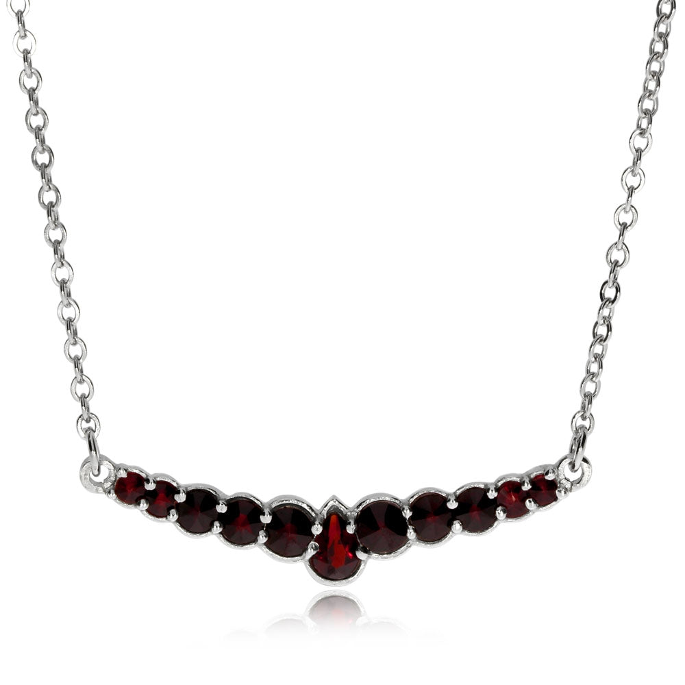Stříbrný rhodiovaný náhrdelník s jednoduchou ozdobou postupně se zmenšujících kamínků od středové kapky granátu almandinu je vhodný pro běžné společenské příležitosti. Svojí elegancí doplní výstřih halenky nebo se bude dobře vyjímat na světlé látce oblečení. Tento český granátový šperk je z dílen družstva umělecké výroby Granát Turnov a při jeho zakoupení obdržíte certifikát pravosti od výrobce. Náhrdelník je dodáván v krabičce s logem d.u.v. Granát Turnov.