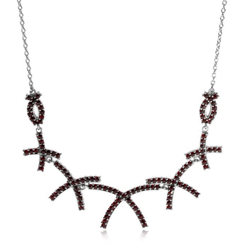 Stříbrný náhrdelník s českými granáty - Zkřížené linie, Granát Turnov