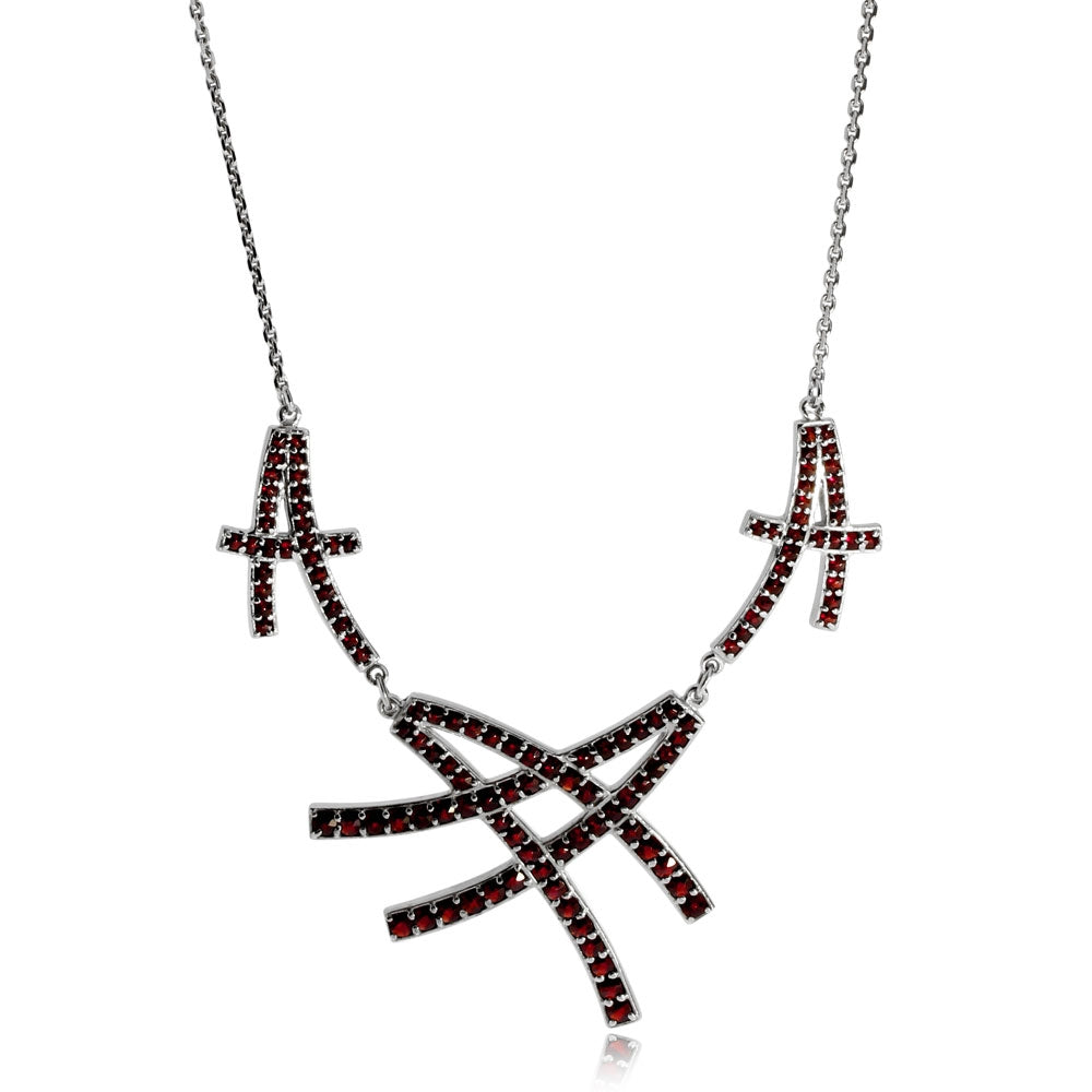 Stříbrný náhrdelník s českými granáty - Dvojitě zkřížené linie, Granát Turnov