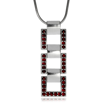 Stříbrný náhrdelník s českými granáty - Tři čtverce v závěsu, Granát Turnov