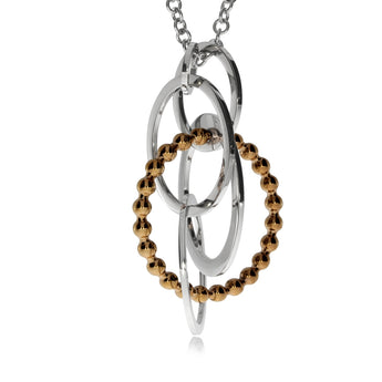 Velice krásný dámský náhrdelník Morellato, který je skvělou ukázkou designérského umění tohoto italského výrobce. Náhrdelník je vyrobený z lesklé chirurgické oceli se speciální úpravou, která umožňuje různé zbarvení kovu. Tvoří ho řetízek, který nese ozdobu tvořenou několika spletenými kruhy. Celou kompozici potom doplňuje jeden kroužek v neobvyklé barvě champagne složený z malých kovových kuliček. Tento neotřelý design najdete také u dalších šperků Morellato, se kterými tvoří náhrdelník sadu.