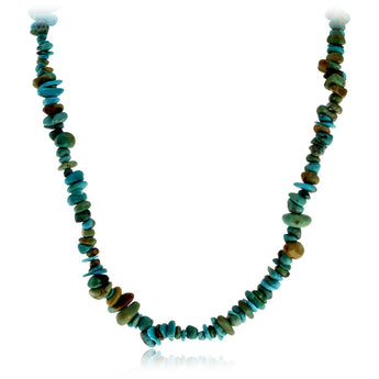 Okouzlující dámský náhrdelník, který vyniká svou osobitostí a jemností. Náhrdelník nese malé kousky polodrahokamu tyrkysu v různých odstínech, od pronikavě modrou až po hnědé příměsi.
