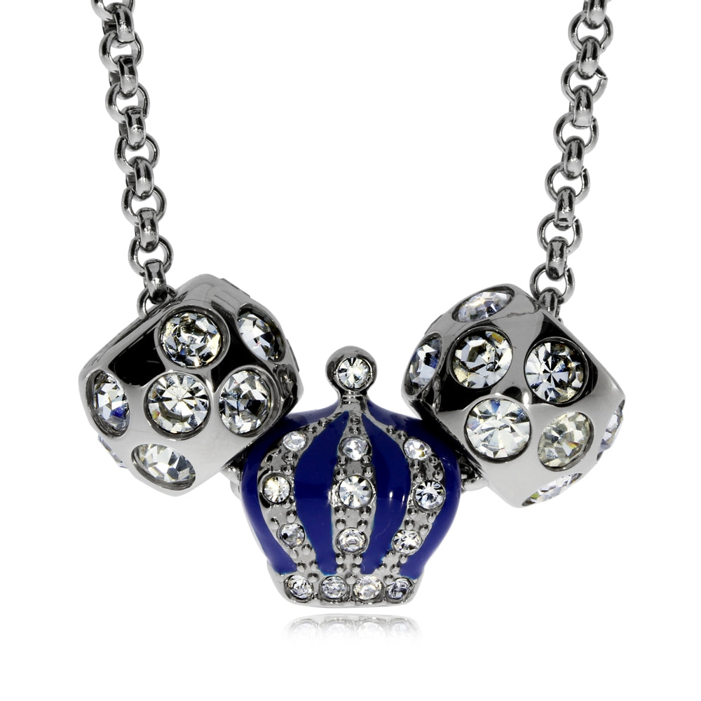 Nápaditý dámský náhrdelník, který představuje osobitý styl italského výrobce Morellato. Náhrdelník je vyrobený z chirurgické oceli a jednoduchý řetízek nese tři ozdoby, dva oválky osázené čirými křišťály a jeden ve tvaru modré korunky. Vzniká tak velice zajímavá kombinace plná třpytu.