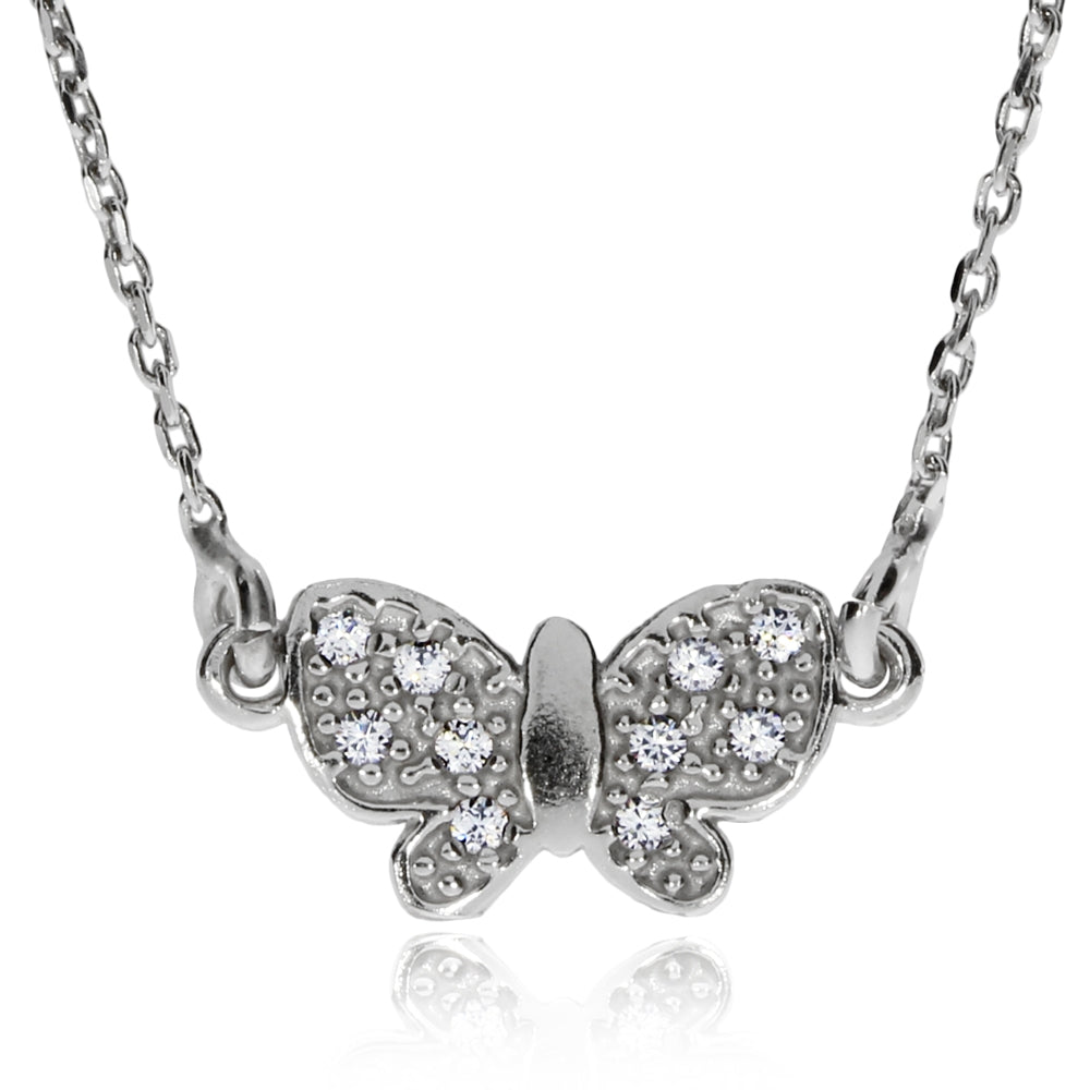 Stříbrný náhrdelník se zirkony (kubická zirkonie) - Malý motýl