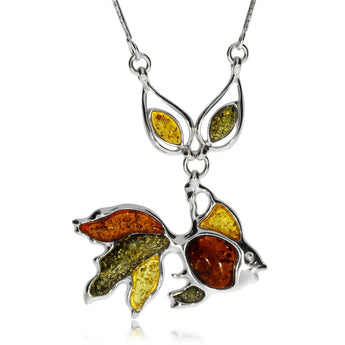 Stříbrný náhrdelník s jantarem tří barev - Rybička