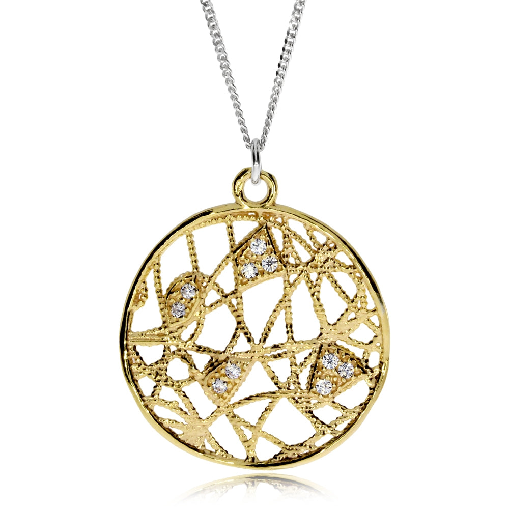 Stříbrný náhrdelník s kulaltým přívěskem - Zlacená mřížka zdobená zirkony (cubic zirconia