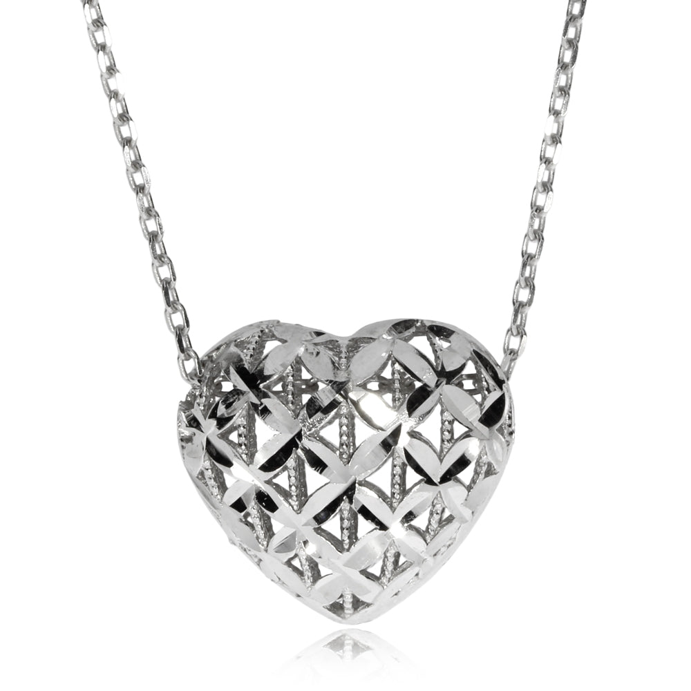 Stříbrný rhodiovaný náhrdelník - Mřížkované srdce