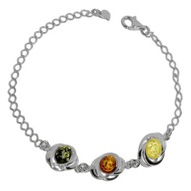 Stříbrný náramek ozdobený jantarem kulatého tvaru - Tři prvky na středu 1 107 Kč /Včetně DPH.Vyprodáno
