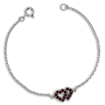 Jemný stříbrný náramek vhodný zejména pro dívky má na svém středu zdvojené srdíčko, kde jsou ve hladké obrubě zasazené české granáty. Stříbrný rhodiovaný řetízek náramku je dlouhý jen 16 cm. Náramek je součástí soupravy šperků se stejným motivem zdvojeného srdce a byl vytvořen mistry z družstva umělecké výroby Granát Turnov. Při zakoupení náramku obdržíte také certifikát pravosti od výrobce.
