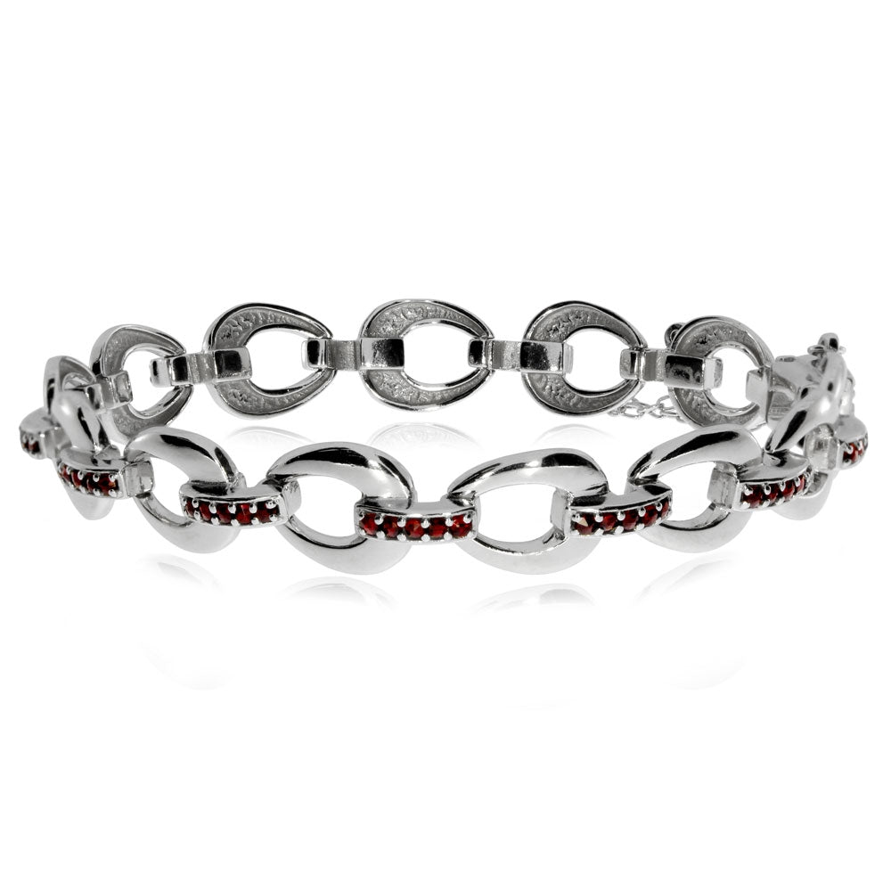 Stříbrný náramek - Oka s granátovými spoji, Granát Turnov