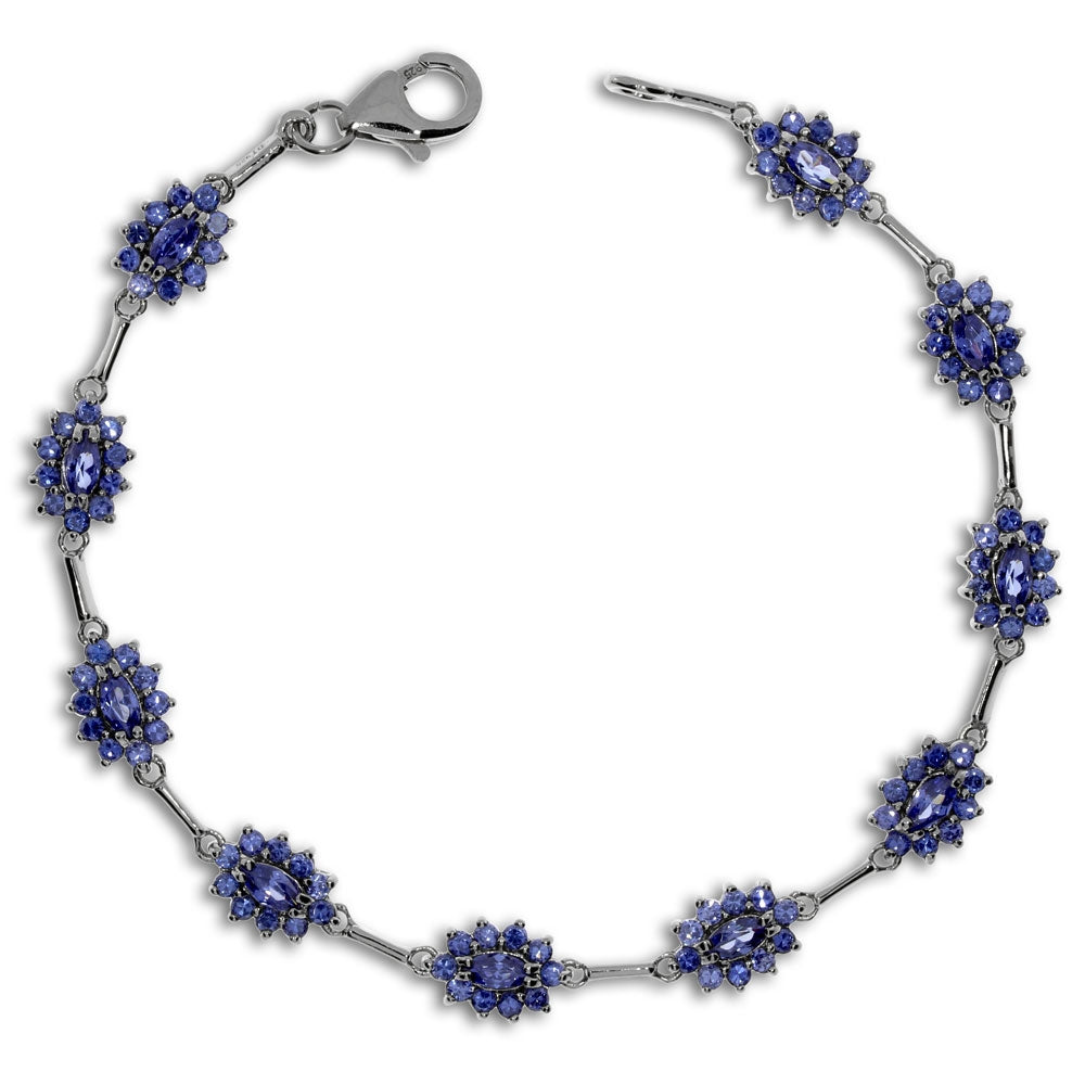 Stříbrný náramek se syntetickými kameny - Květiny fialové barvy