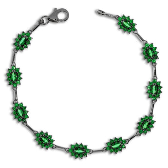 Jemný a velice krásně zpracovaný dámský náramek s dívčím půvabem, který bude elegantní ozdobou vhodnou i pro slavnostní chvíle. Náramek je vyrobený z odolného rhodiovaného stříbra a doplňují ho květy složené ze zelených syntetických kamenů, které se nápadně třpytí.
