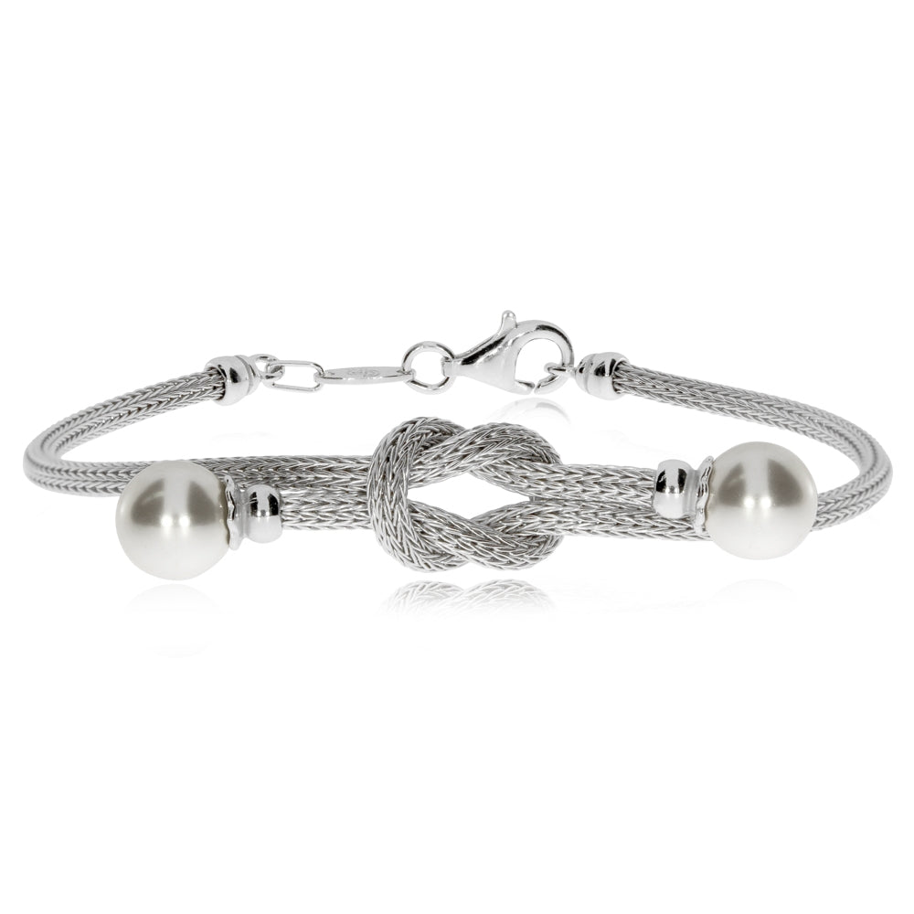 Stříbrný náramek - Ozdobná smyčka se syntetickými perlami