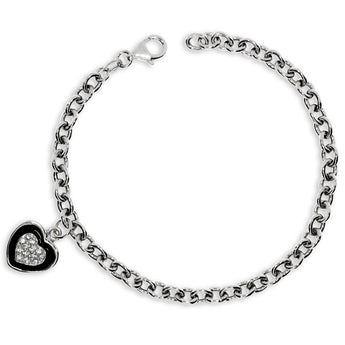 Stříbrný náramek se zirkony (cubic zirconia) a černým smaltem na srdci