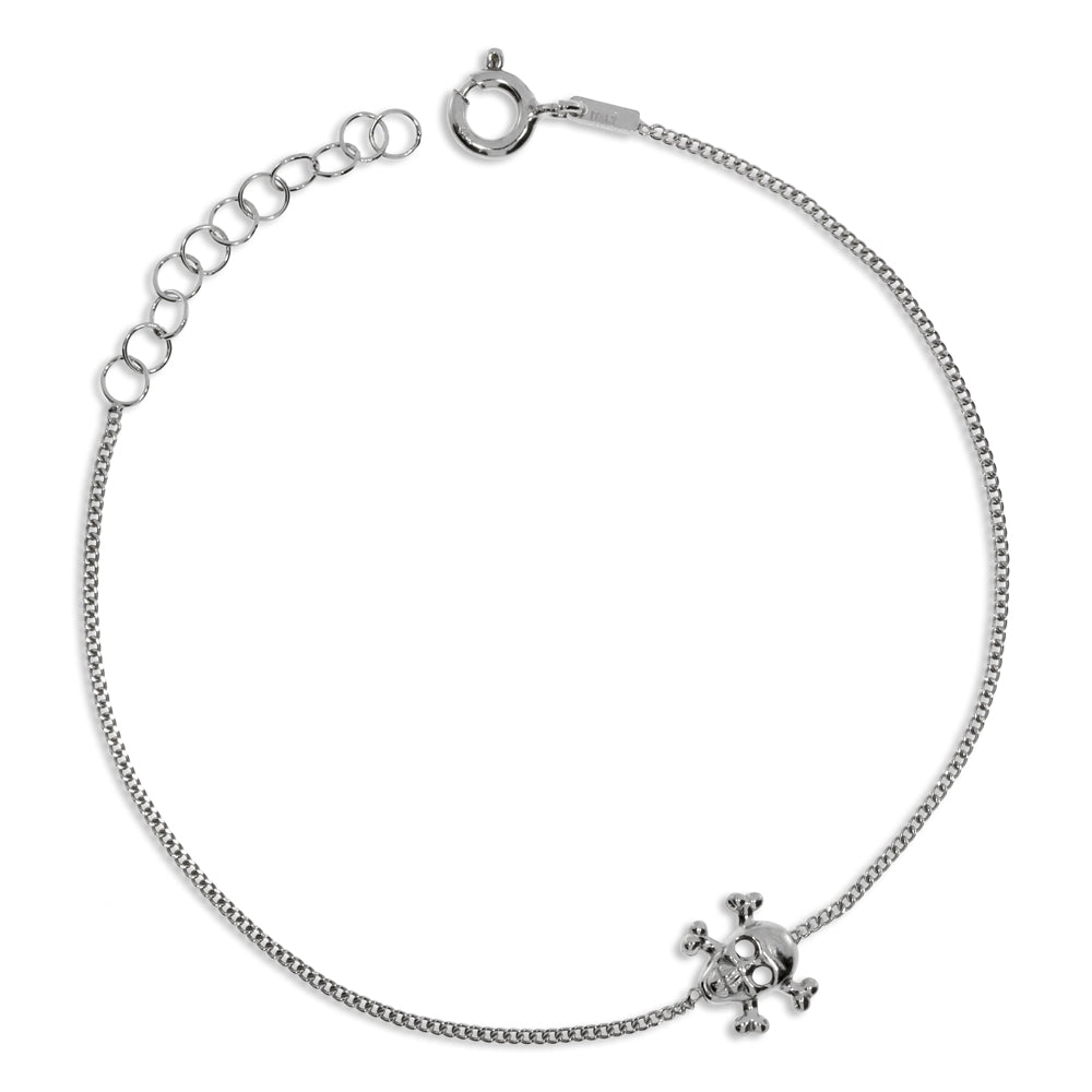 Stříbrný náramek, na středu zdobený lebkou, 16 cm