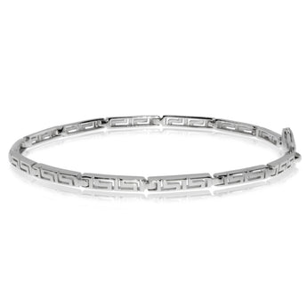 Krásně zpracovaný dámský přívěsek, který v sobě spojuje jemnost a nápadité zpracování. Náramek se skládá ze stříbrných dílků, na kterých je vyobrazený pravidelný řecký motiv. Vyrobený je ze stříbra s vrstvou odolného a krásně lesklého rhodia.