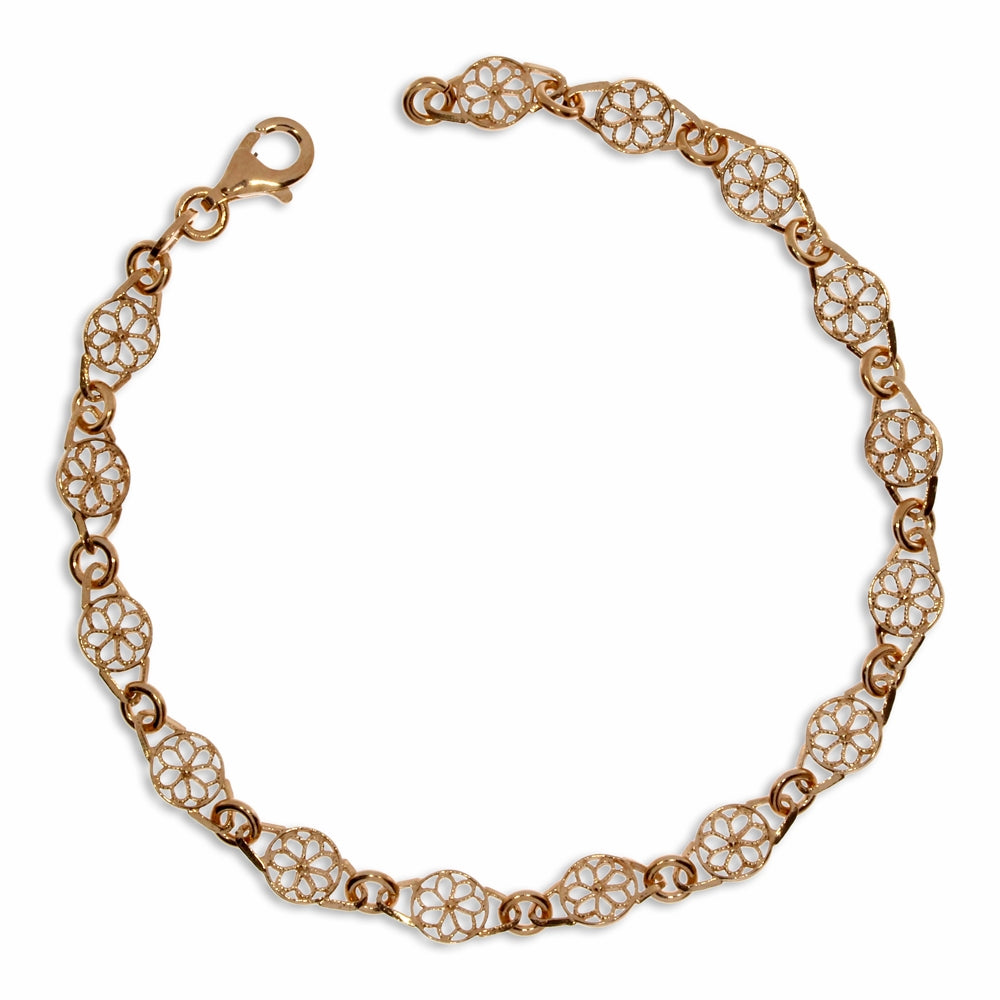 Stříbrný náramek růžové barvy - Zdobné květiny