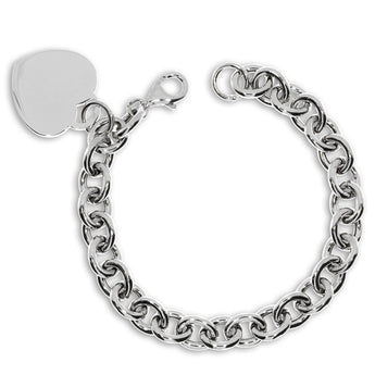 Působivě jednoduchý dámský náramek, který je skvělou ukázkou nadčasové elegance současných šperků. Náramek tvoří nekomplikovaný řetízek s výraznými oky a zdobí ho lesklý přívěsek ve tvaru srdce. Šperk je vyrobený ze zářivého a dobře odolného rhodiovaného stříbra, které zanechává povrchu kovu krásně lesklý. Tento efekt na přívěsku skvěle vyniká.
