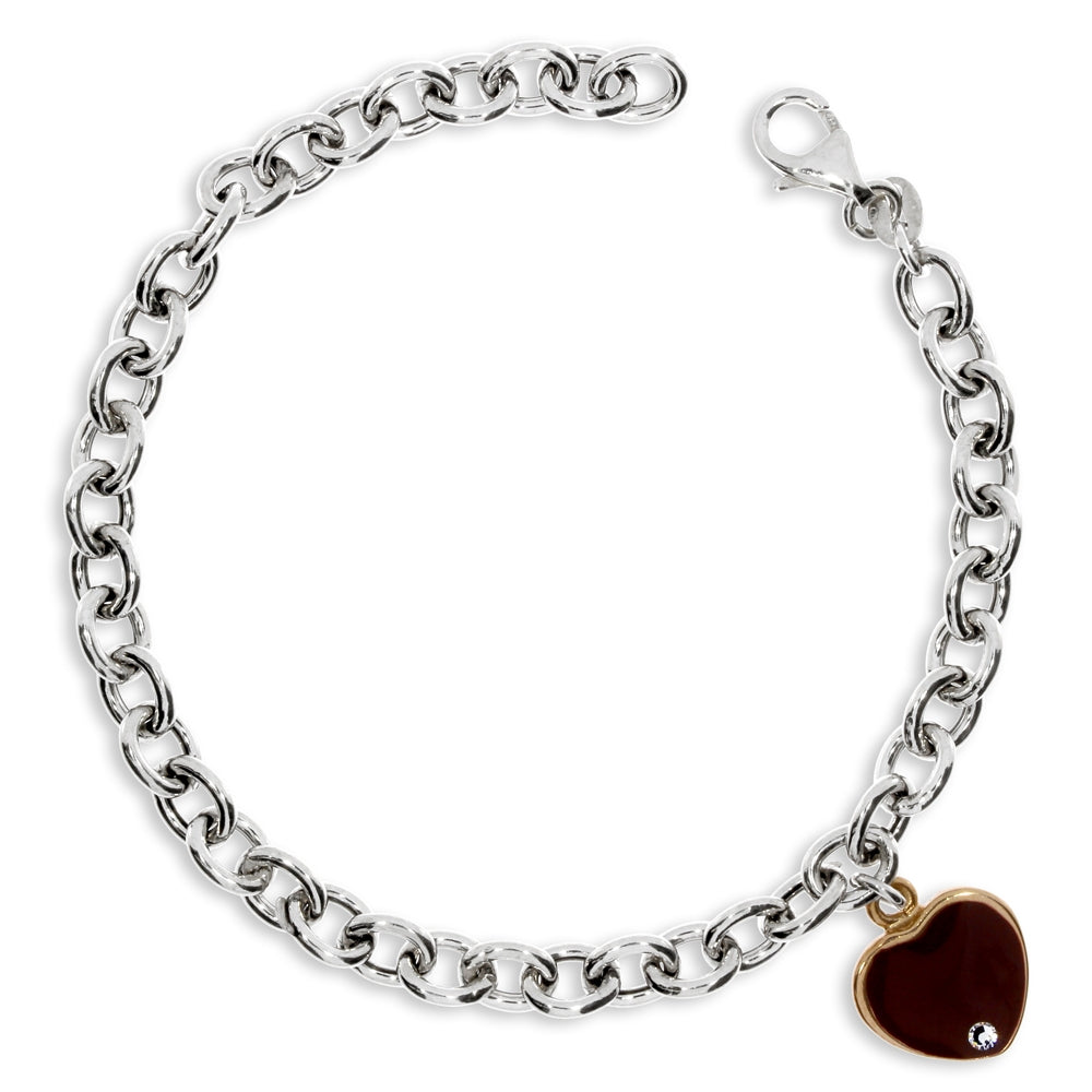 Stříbrný náramek - Červené srdce