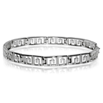 Zajímavý dámský náramek s nestárnoucím řeckým motivem ocení každá žena, která si příliš nepotrpí na okázalost. Jednoduchý motiv je oživený jemným zpracováním, které kontrastuje s geometickou pravidelností vzoru. Rhodiovaná povrchová úprava potom propůjčuje povrchu krásný lesk. Tento náramek pro vás máme v různých velikostech.