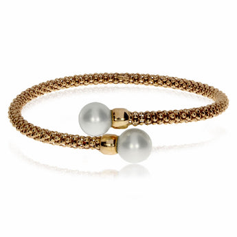 Stříbrný náramek zakončený syntetickými perlami a s růžovým povrchem