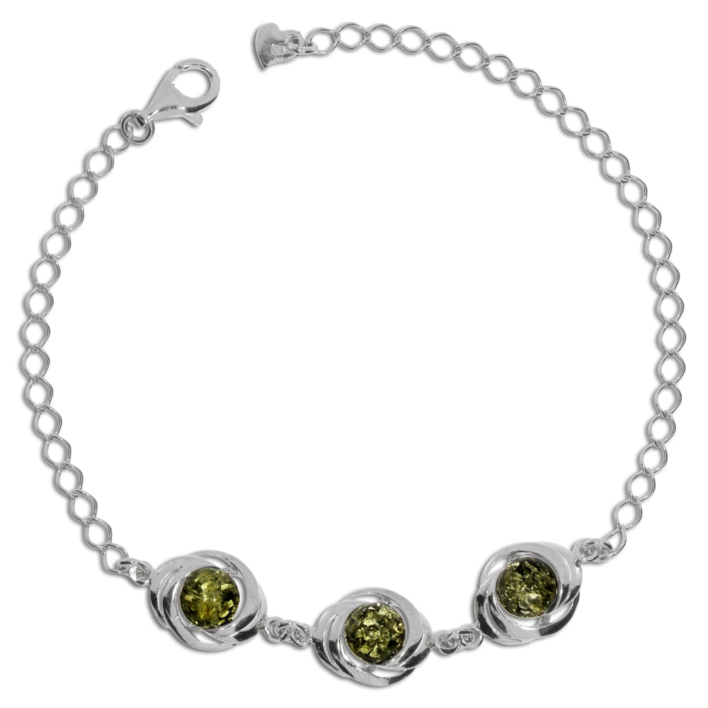 Stříbrný náramek se zeleným jantarem - Tři kulaté jantary