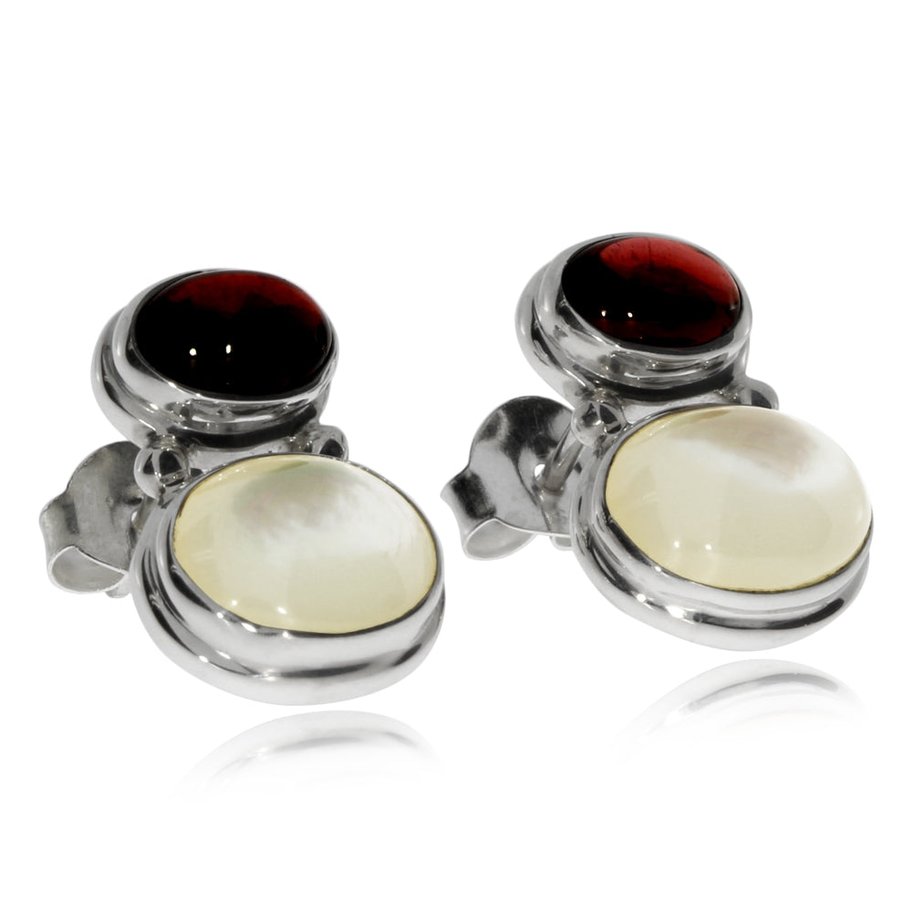Stříbrné náušnice s perletí a granátem (almandin) ve dvou oválech