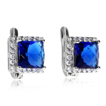 Stříbrné náušnice se zirkony (cubic zirconia), modrý středový čtverec