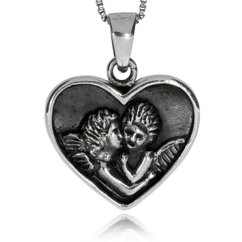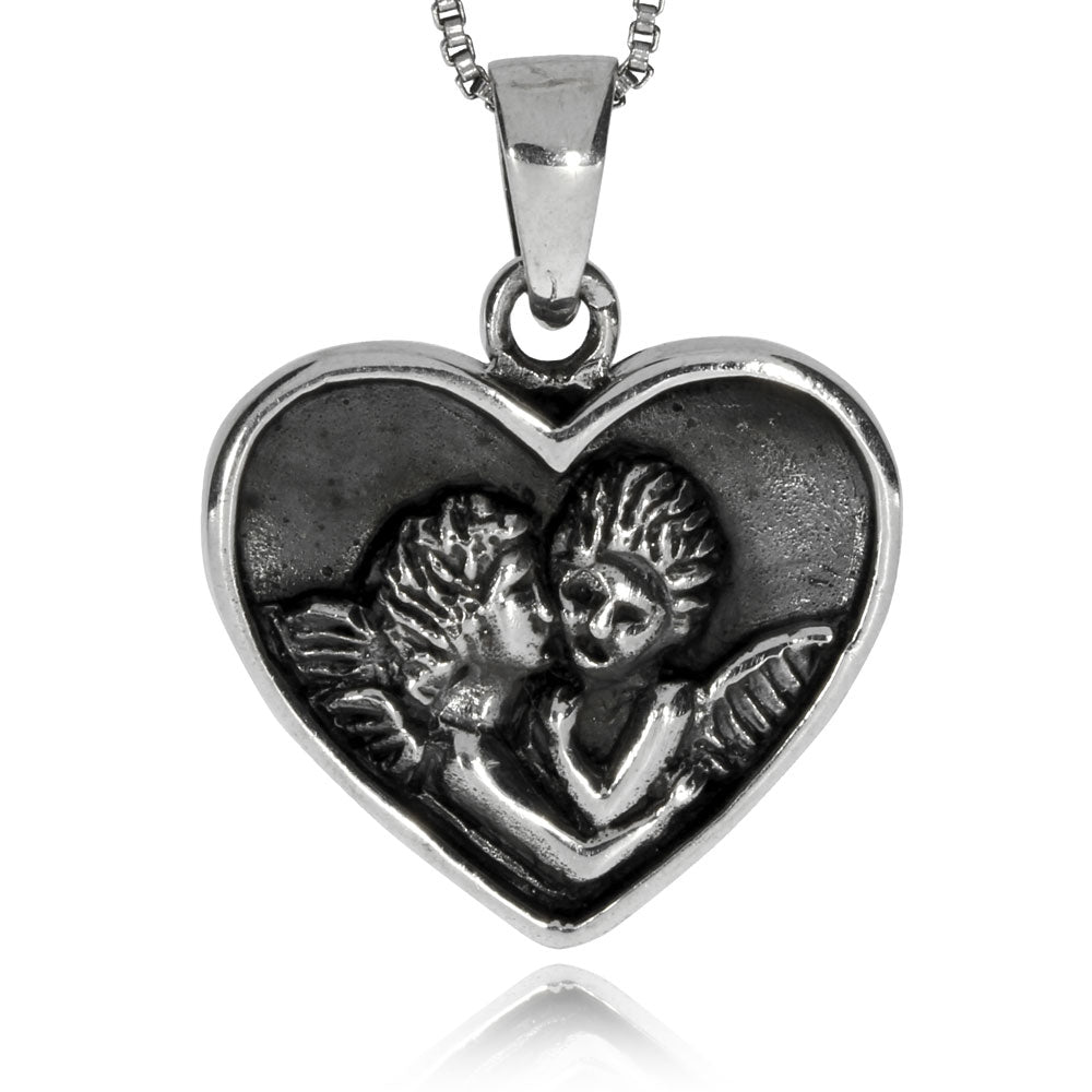 Krásně zpracovaný přívěsek plný mocných symbolů naděje a lásky. Přívěsek ve tvaru srdce nese vyobrazené dva andílky, posly Boží lásky. Přívěsek je vyrobený ze stříbra se starostříbrnou úpravou povrchu, detaily designu tak dobře vynikají.