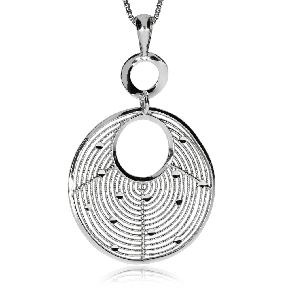 Kulatý stříbrný přívěsek - Soustředné kruhy zdobené brusem