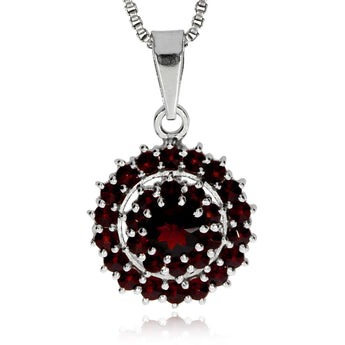 Stříbrný přívěsek vyrobený v družstu umělecké výroby Granát Turnov je bohatě ozdoben drobnými českými granáty ve dvou řadách okolo většího středového kamene - granátu almandinu. České granáty jsou broušené kulatým hvězdovým brusem a jsou uchyceny jemnými krapnami, které tento kulatý přívěsek zdobí. Průměr přívěsku je téměř 1,5 cm a je zavěšen na lesklém očku, které umožňuje průtah i silnějšímu řetízku. Celý šperk je vyroben ze stříbra 925/1000 a je povrchově pokryt rhodiem. Při zakoupení přívěsku obdržíte také certifikát pravosti od výrobce.