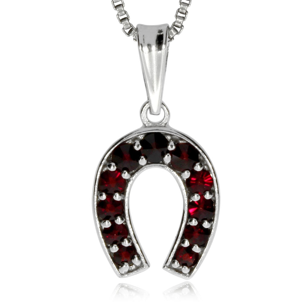 Stříbrný přívěsek - Podkova s českými granáty v obrubě, Granát Turnov