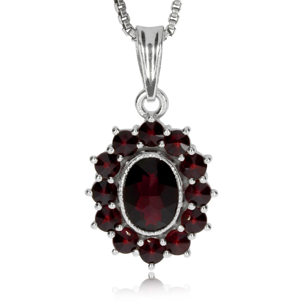 Stříbrný přívěsek - Oválná kytička s českým granátem a almandinem