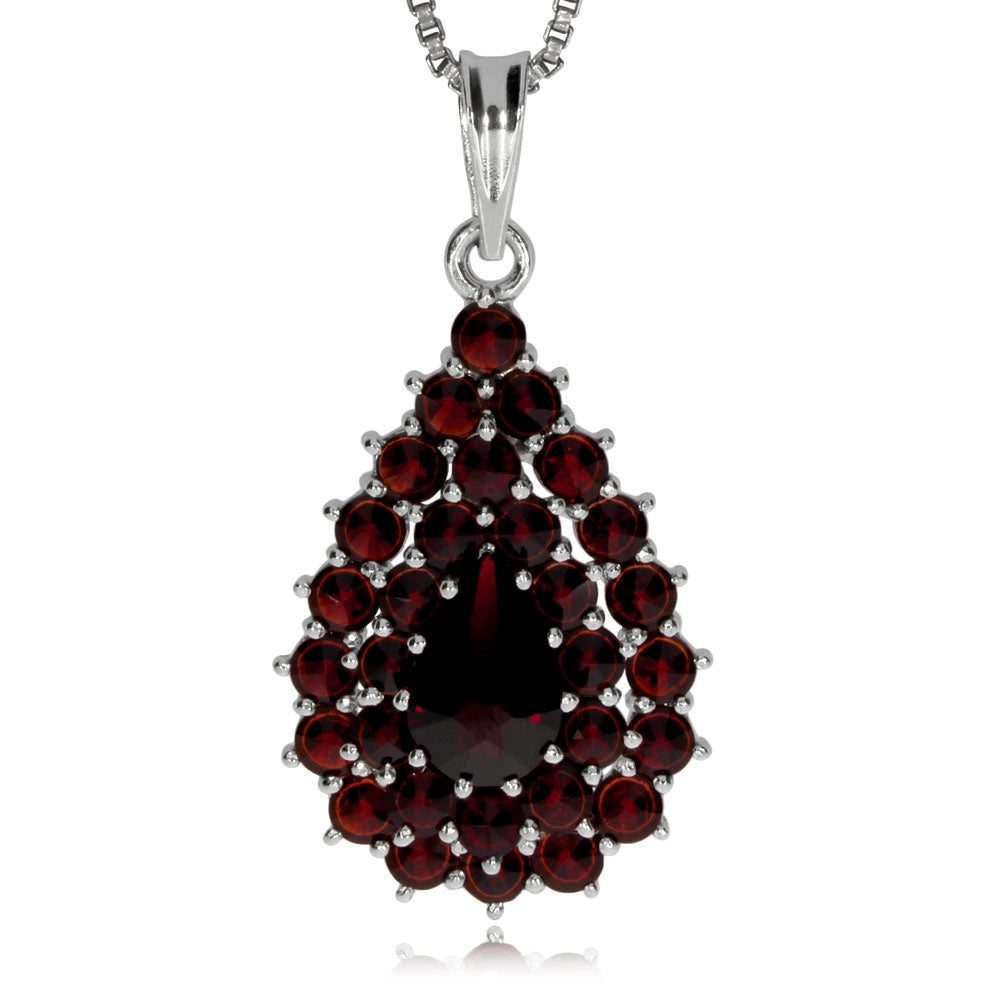 Stříbrný přívěsek s českými granáty - Větší kapka, Granát Turnov