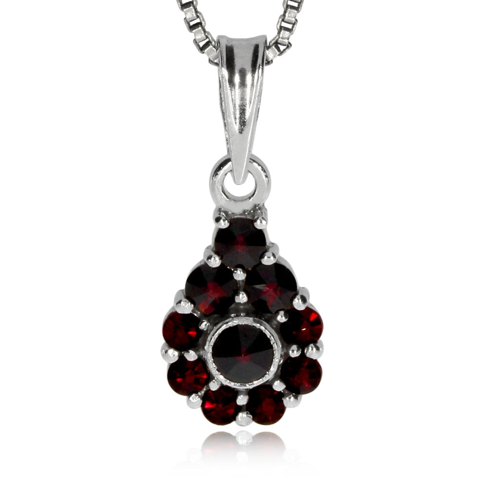 Stříbrný přívěsek - Kapka českými granáty a kulatým středem, Granát Turnov