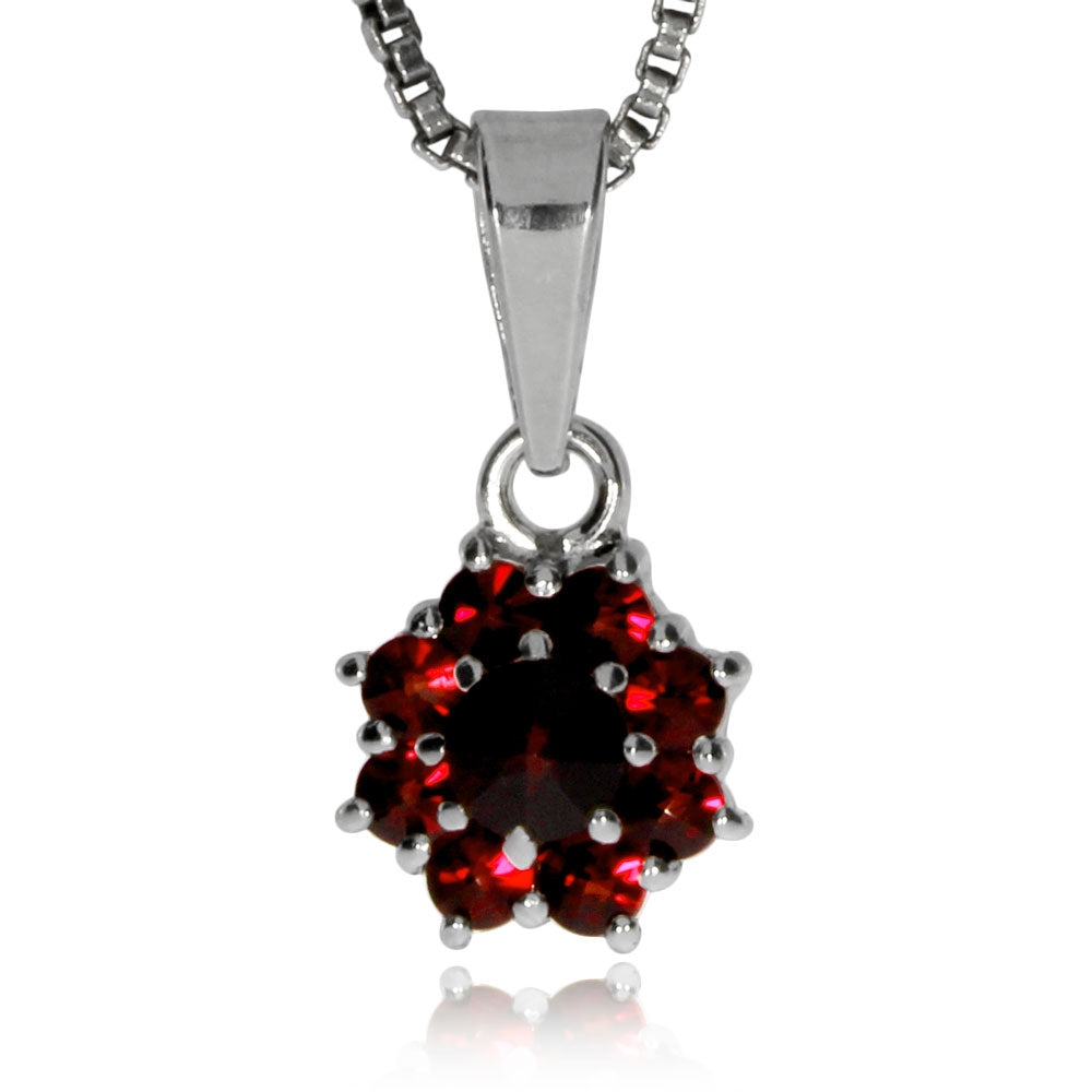 Stříbrný přívěsek - Plná kytička s almandinem a českými granáty, Granát Turnov