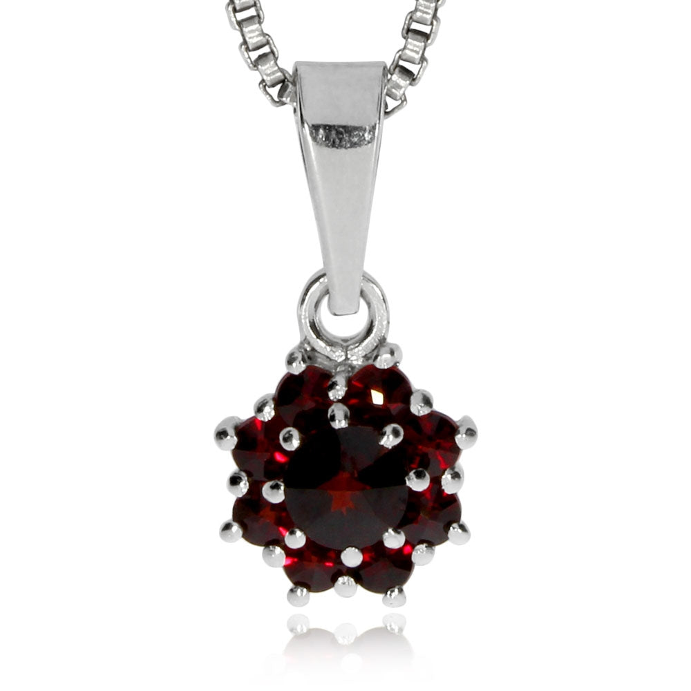 Stříbrný přívěsek s českým granátem a almandinem - Kulatá kytička