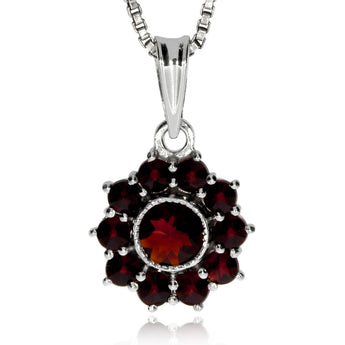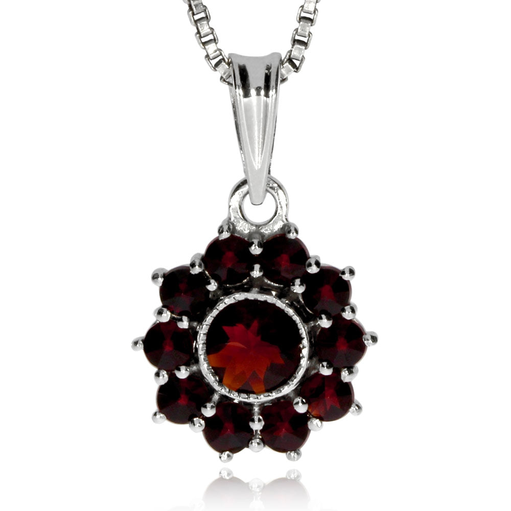 Stříbrný přívěsek s českým granátem a almandinem - Kulatá kytička, Granát Turnov