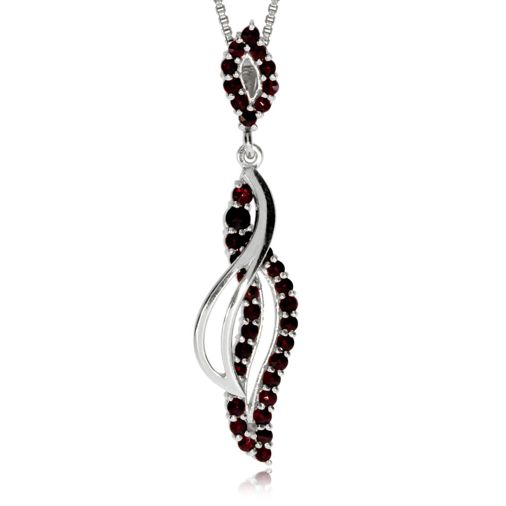 Stříbrný přívěsek s českými granáty a almandinem má velmi zajímavý podlouhlý design. Zdvojené esovité linie se prolínají v kontrastu lesklého stříbra a hustě osazené brušenými granáty. Zdobný prvek představuje i úchyt pro řetízek a celému šperku tak dodává slavnostní ráz. Přívěsek byl vytvořen mistry z družstva umělecké výroby Granát Turnov a při jeho zakoupení obdržíte rovněž certifikát pravosti od výrobce.