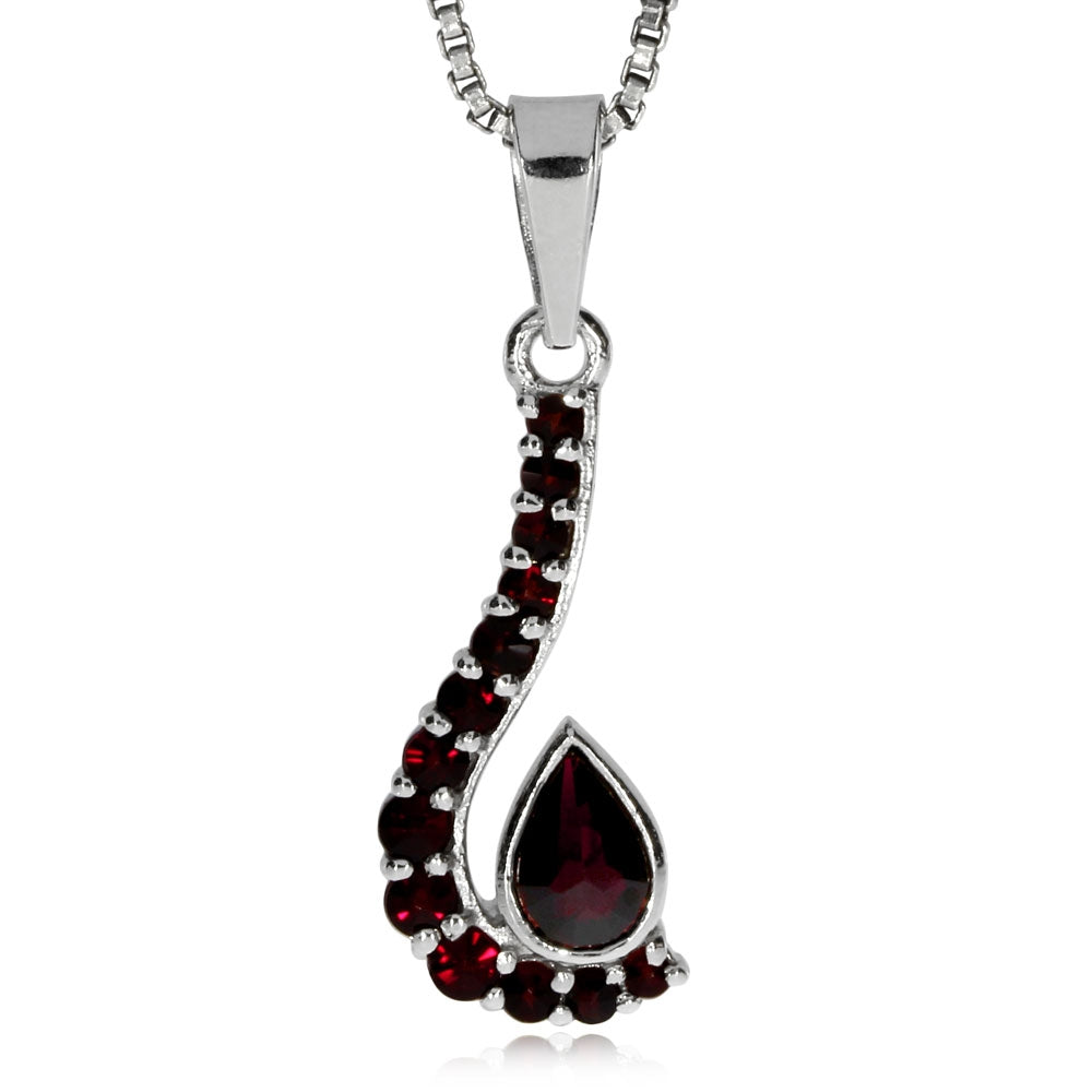 Stříbrný přívěsek s českými granáty a almandinovou kapkou, Granát Turnov