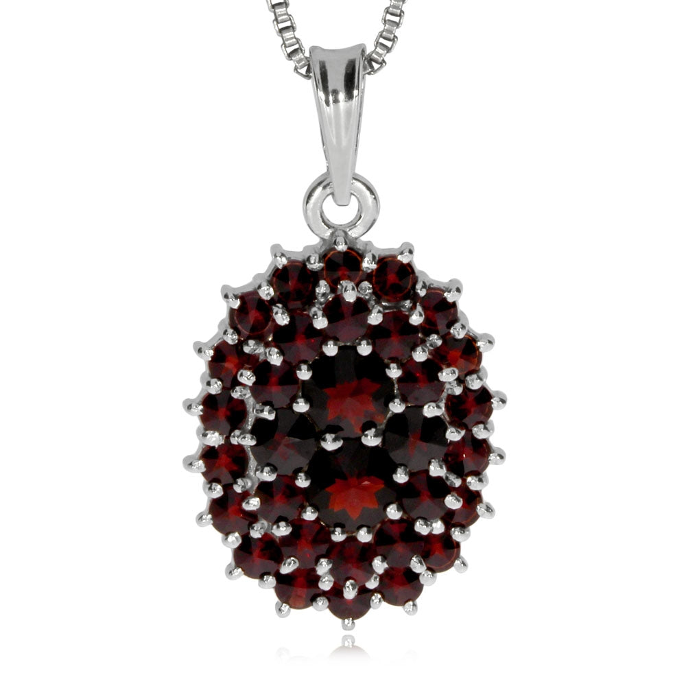 Stříbrný přívěsek - Ovál s českými granáty a almandinem, Granát Turnov