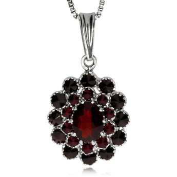 Stříbrný přívěsek - Oválek s granáty, Granát Turnov