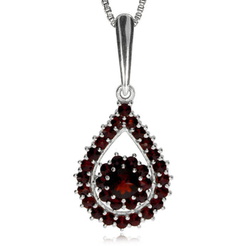 Stříbrný přívěsek - Kytička v obrysu kapky s českými granáty, Granát Turnov