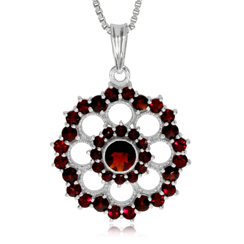 Stříbrný přívěsek - Kulatá krajka s českými granáty, Granát Turnov