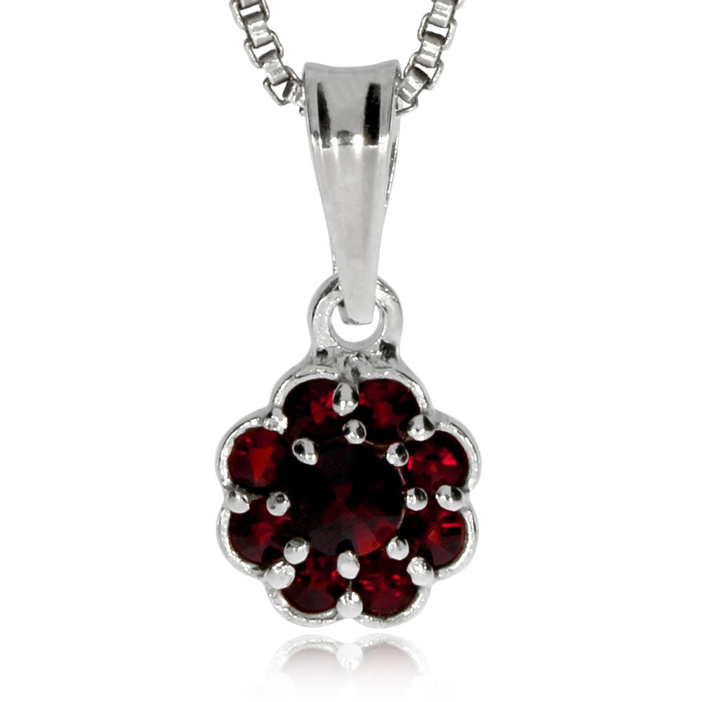 Stříbrný přívěsek - Drobná kytička s českými granáty a almandinem, Granát Turnov