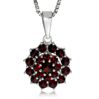 Stříbrný přívěsek s českými granáty - Kulatý květ, Granát Turnov