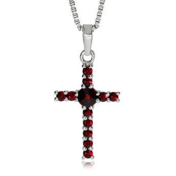 Drobný přívěsek na krk ve tvaru jednoduchého křížku je vyroben ze stříbra o ryzosti 925/1000, které je na povrchu galvanizováno rhodiem a z broušených přírodních granátů. Jedenáct drobných kamínků v ramenech kříže jsou české granáty - pyropy a větší granát umístěný uprostřed křížku je granát almandin. Všechny granáty jsou vybroušené kulatým hvězdovým brusem a jsou zasazené do kotlíků pomocí jemných krapen. Křížek nemá žádou vnější obrubu. Očko na řetízek má jednoduchý tvar a je lesklé. Design šperku dává vynikout krásné temně rudé barvě granátu. Tento granátový křížek byl vytvořen v družstvu umělecké výroby Granát Turnov a při jeho zakoupení obdržíte rovněž certifikát pravosti od výrobce.
