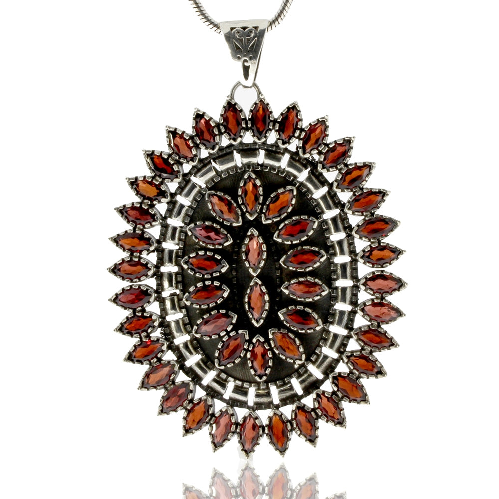 Stříbrný s granátem (almandin) - Ozdobný ovál