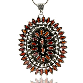 Originálně zpracovaný dámský přívěsek s orientálním půvabem, který zaujme svou nápaditou a krásně zdobnou kompozicí. Celý motiv doplňuje osázení červenými přírodními granáty almandiny, které se jemně třpytí. Přívěsek je vyrobený z kvalitního stříbra se starostříbrnou úpravou, která dodává šperku osobitý charakter.