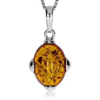 Stříbrný přívěsek s medovým jantarem - Jednoduchý oválek